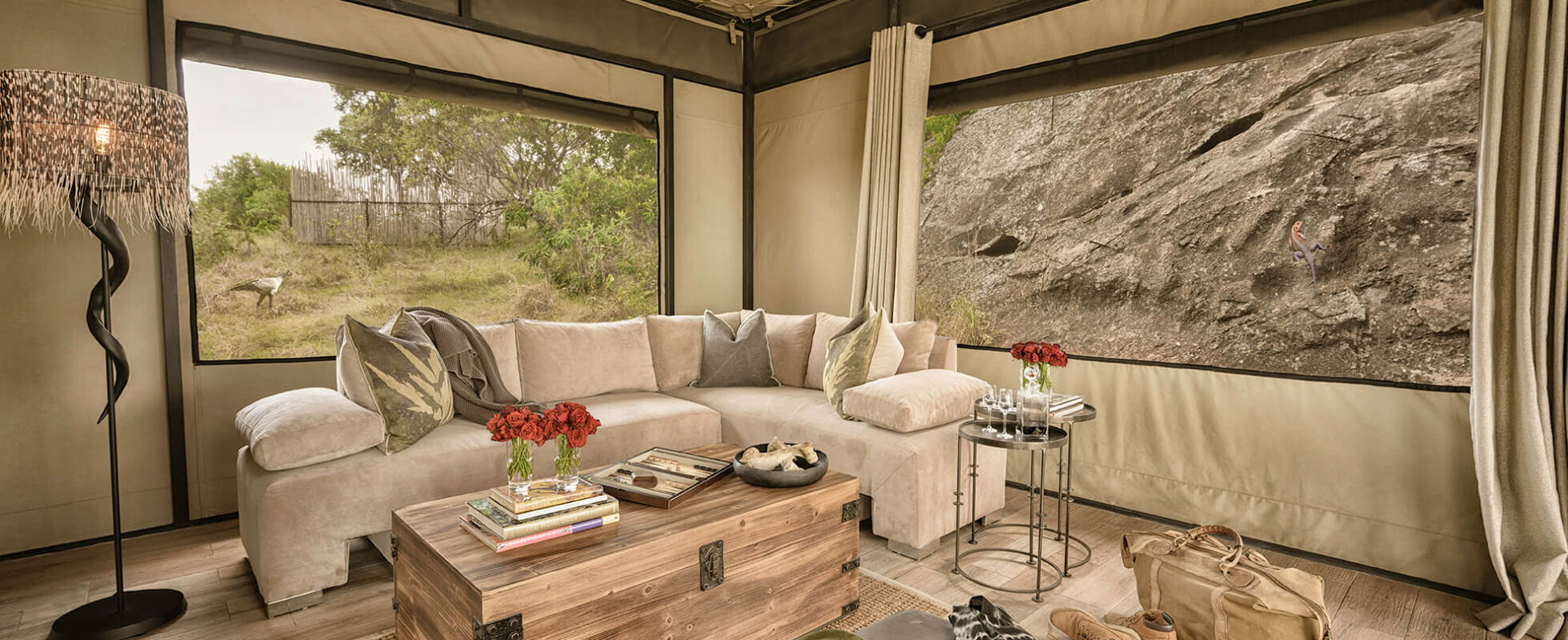Everything here is designed for you to marvel at the view and the wildebeest and zebra herds that frequently parade by. An infinity pool is set within a rocky natural cave, where it allows you to savor your drink while watching the wildlife stroll by. The tents afford you multiple views: from the comfort of your bed, from the swing bed on your terrace, and from the romantic copper bathtub that is perched in front of the glass windows that open up to the vast plains. Additionally, the two honeymoon/family tents also have their own plunge pools which also allow for a breathtaking view. The food served is simply mouthwatering, and the service is impeccable. A special place for your memorable Great Migration adventure!